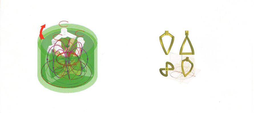 合理的流場設(shè)計是決定攪拌設(shè)備攪拌結(jié)果的要點。為了達(dá)到用戶生產(chǎn)工藝多組分、多配方的需求,以及對物料粘度的流動性的特點,將攪拌流場設(shè)計成沿公轉(zhuǎn)方向的螺旋式推進(jìn)湍流流場。這種流場可以使攪拌混合與分散混合在相匹配的公轉(zhuǎn)及自轉(zhuǎn)速度下,建立起穩(wěn)定的物料三維湍流,進(jìn)而達(dá)到混合要求。